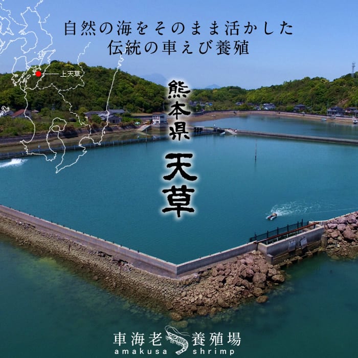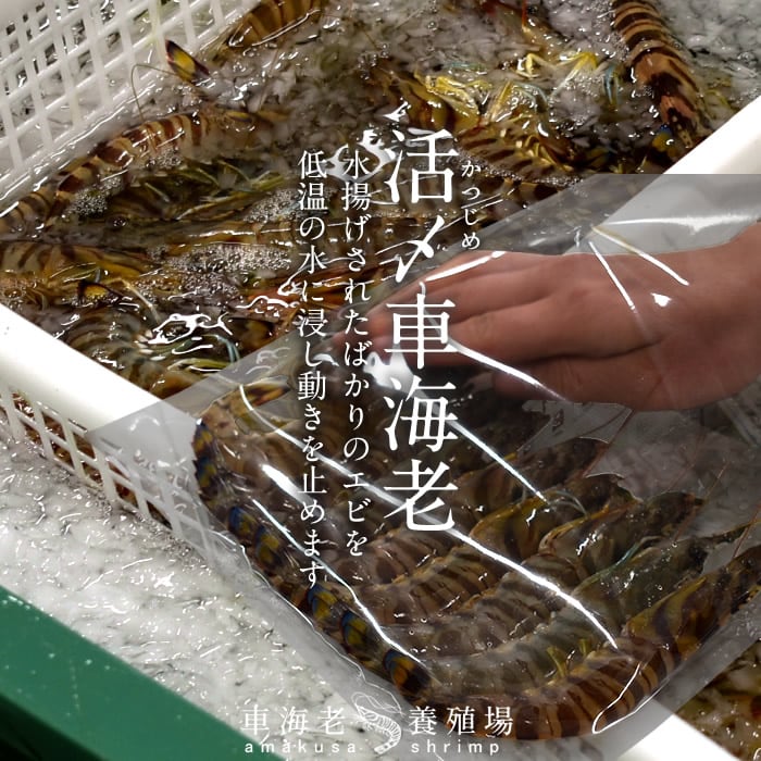 ※クルマエビ養殖発祥の地とされる熊本県天草、えび養殖場より 生きたまま氷水に浸し、活締めした車海老を産地直送でお届け致します。